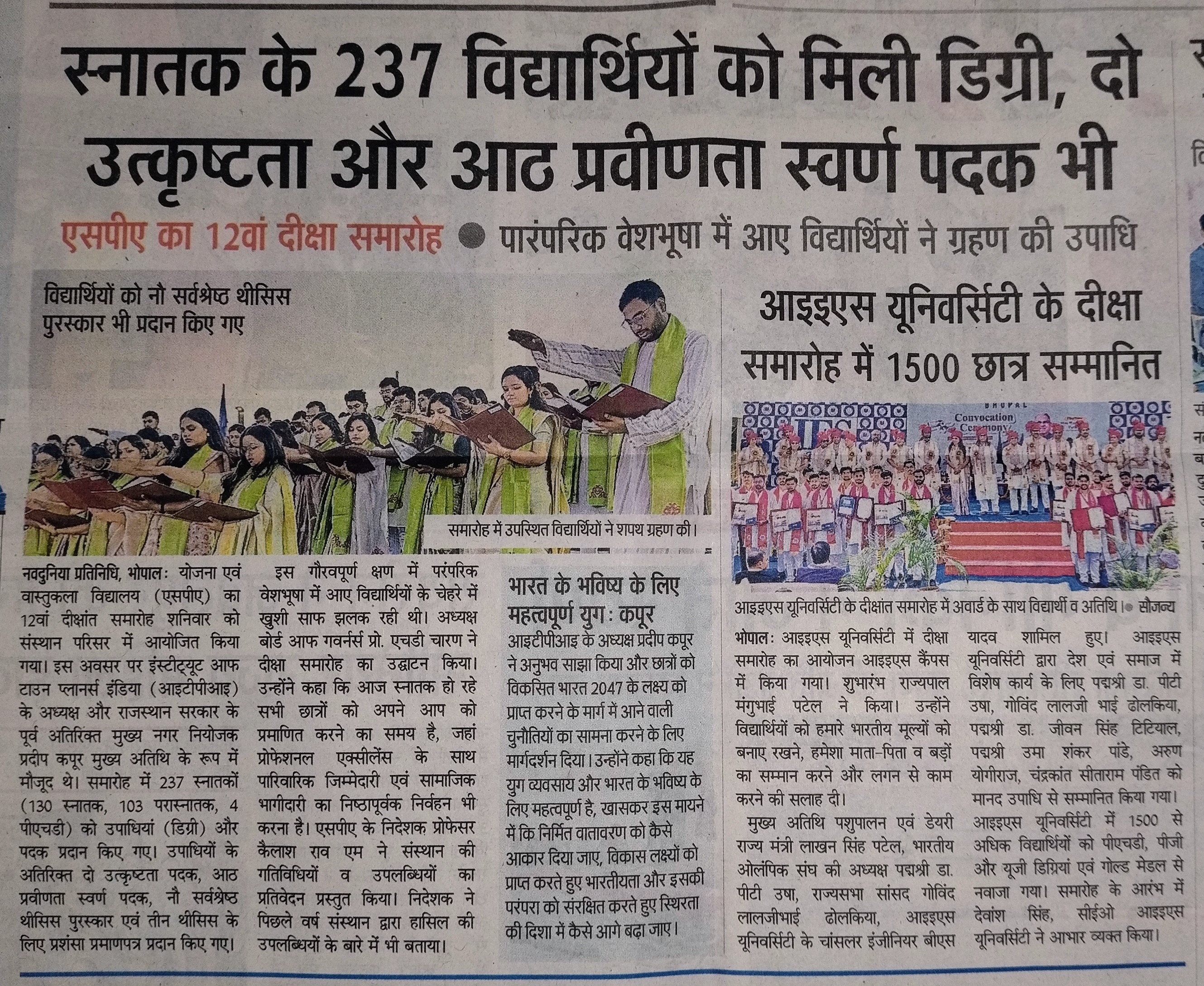 स्नातक के 237 विद्यार्थियों को मिली डिग्री , दो उत्कृष्ट और आठ प्रवीणता स्वर्ण पदक भी (237 graduates received degrees, two excellence and eight proficiency gold medals.)